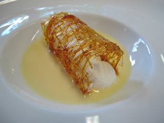 Here we go. I was a little snap happy yesterday. But we did some fun stuff so I thought I'd share. In the morning we worked on another plated dessert. I forget what it's called. Something about a floating meringue. It's fairly simple with its three parts. Crème anglaise, meringue and sugar dome, or nest or barrel, or ball. Whatever shape you make your caramelized sugar.